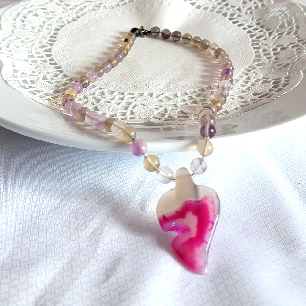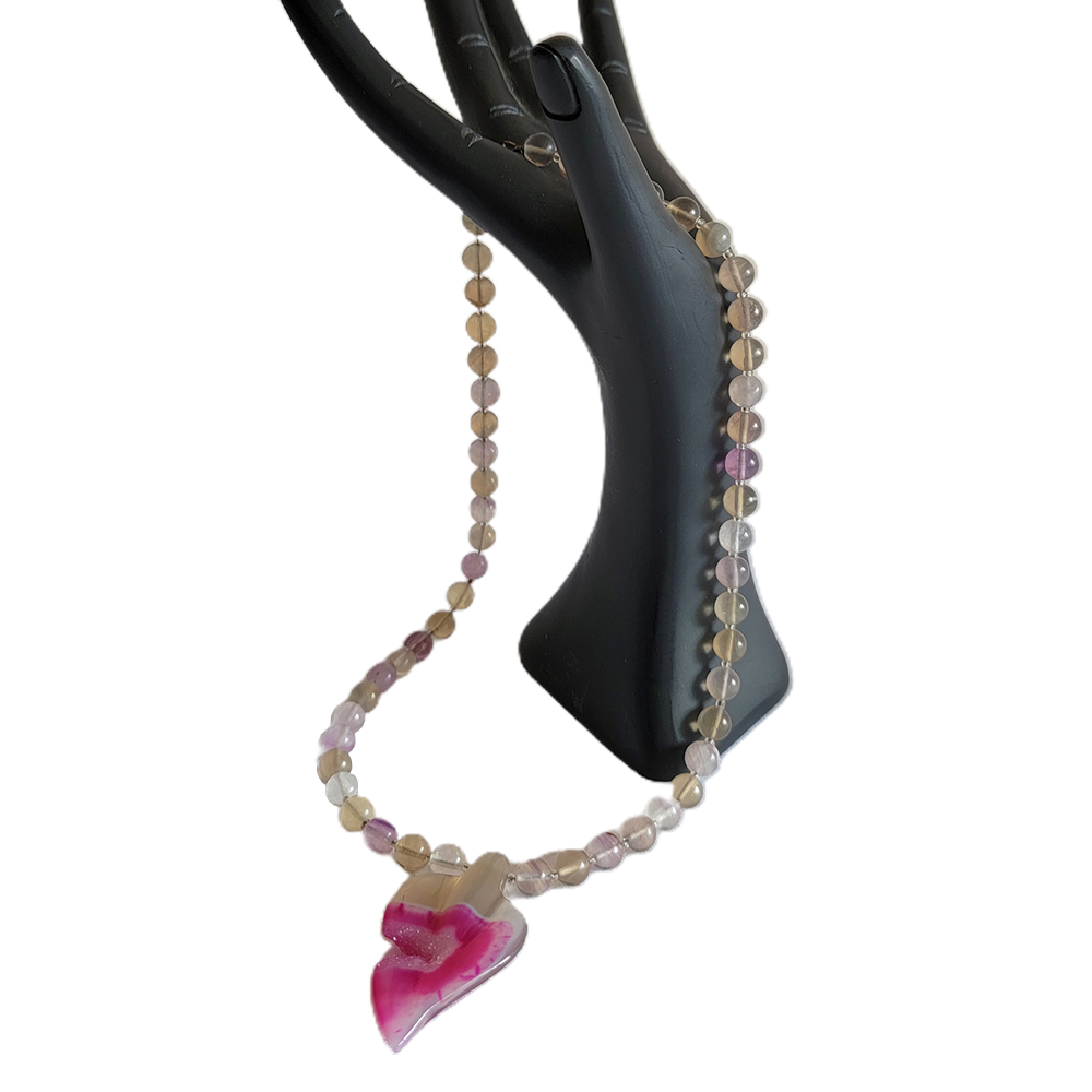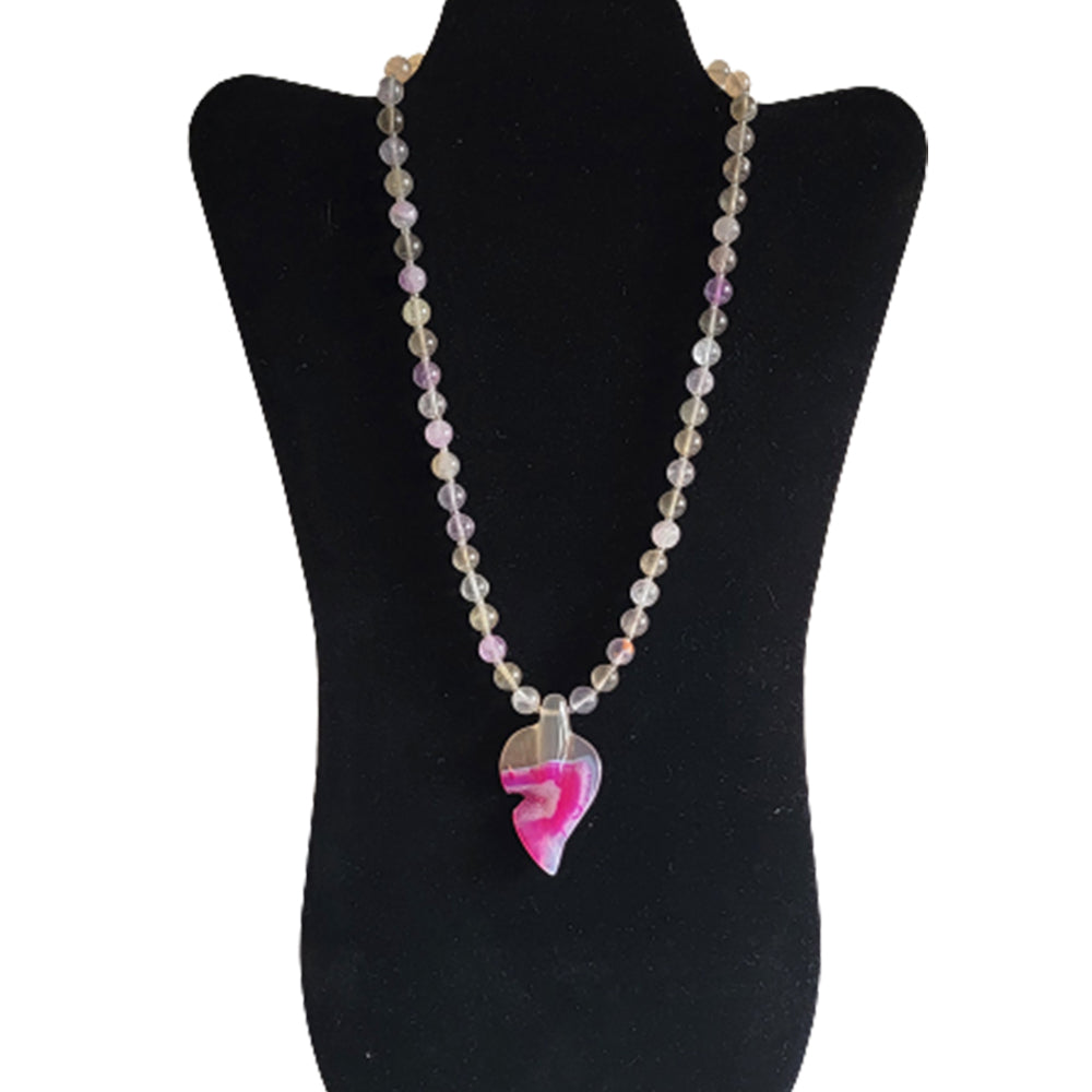 21.5” Round Fluorite w/Crystal Leaf Pendant Necklace