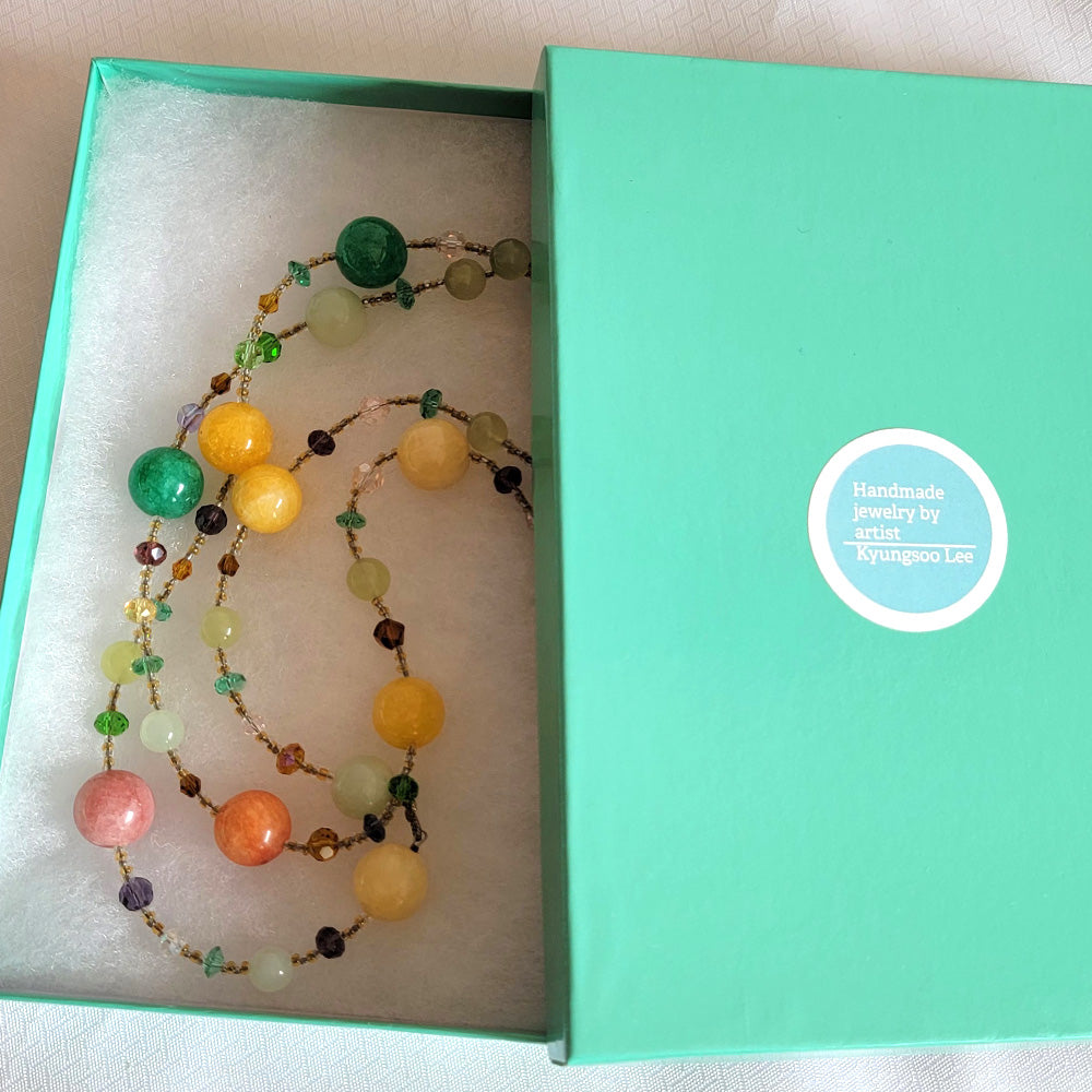 The journey of my jewelry-making began in the early 2000s on the island of Kauai. As someone who was only drawing pictures at the time, it was a hobby that found its way to me on the island. It all started with the jewelry materials and natural stones I received as a gift from my husband by chance, and my passion and effort for jewelry-making have continued to this day as strong as my dedication to drawing. Creating jewelry allows me to continue my creative endeavors using another medium. I want to emphasize that most of the jewelry I create consists of semi-precious natural stones. All designs and handmade production are done by the artist herself, making each piece unique and one-and-only kind jewelry.