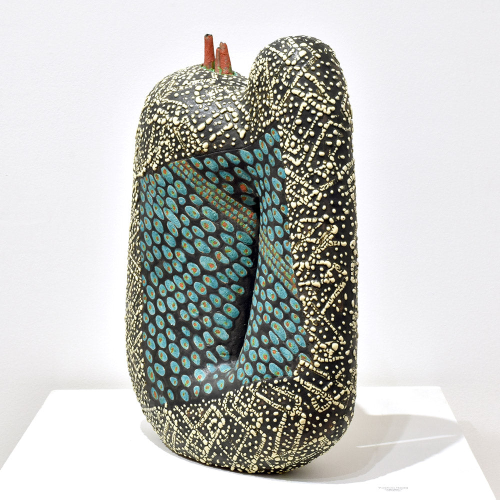 Yoshiro Ikeda (1947-2014) was a ceramic artist spanning the pre and postwar eras as well as contemporary periods in the United States. Having studied art at the Kyoto University of Art in the 1970s and the University of California, Santa Barbara, Ikeda was a well-known ceramic artist both domestically, exhibiting in numerous galleries and art museums including the American Museum of Ceramic Art, and internationally. He was also recognized as an outstanding art educator, dedicating himself to educational endeavors for the next generation of ceramic artists at the University of Kansas in the United States.