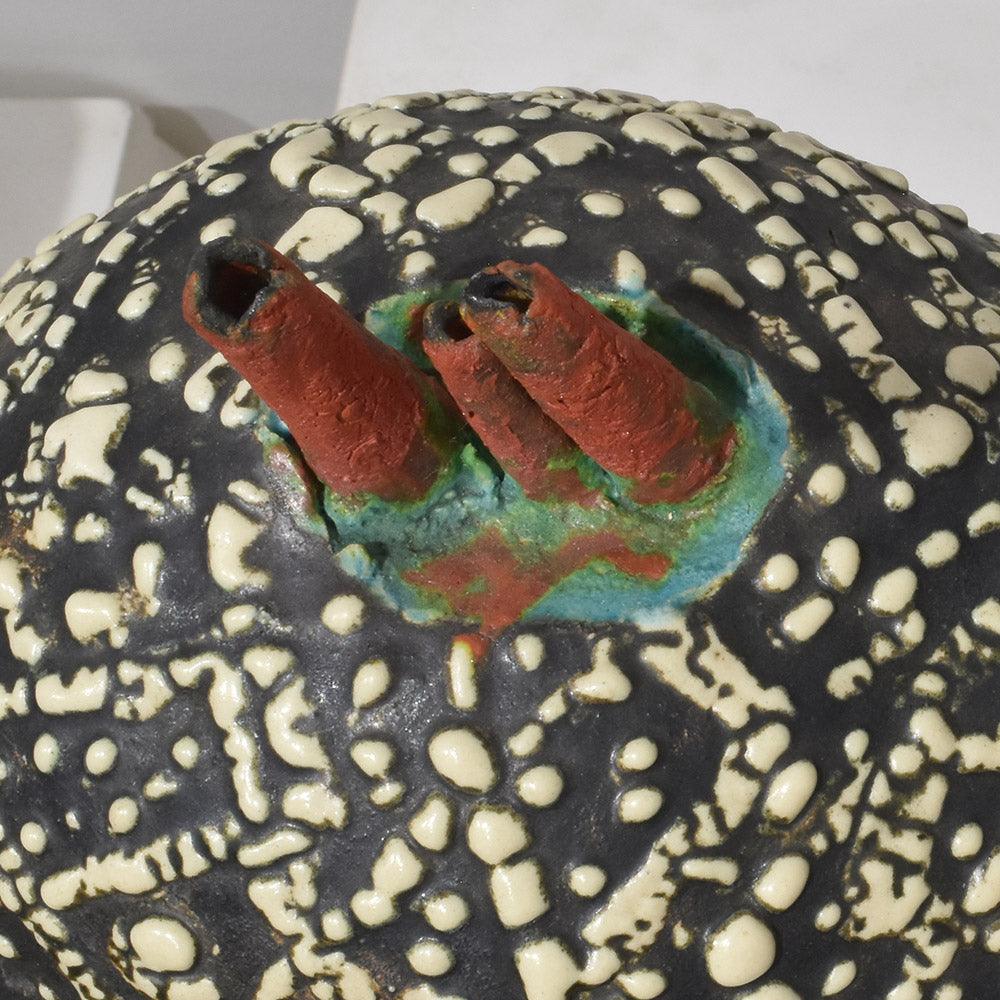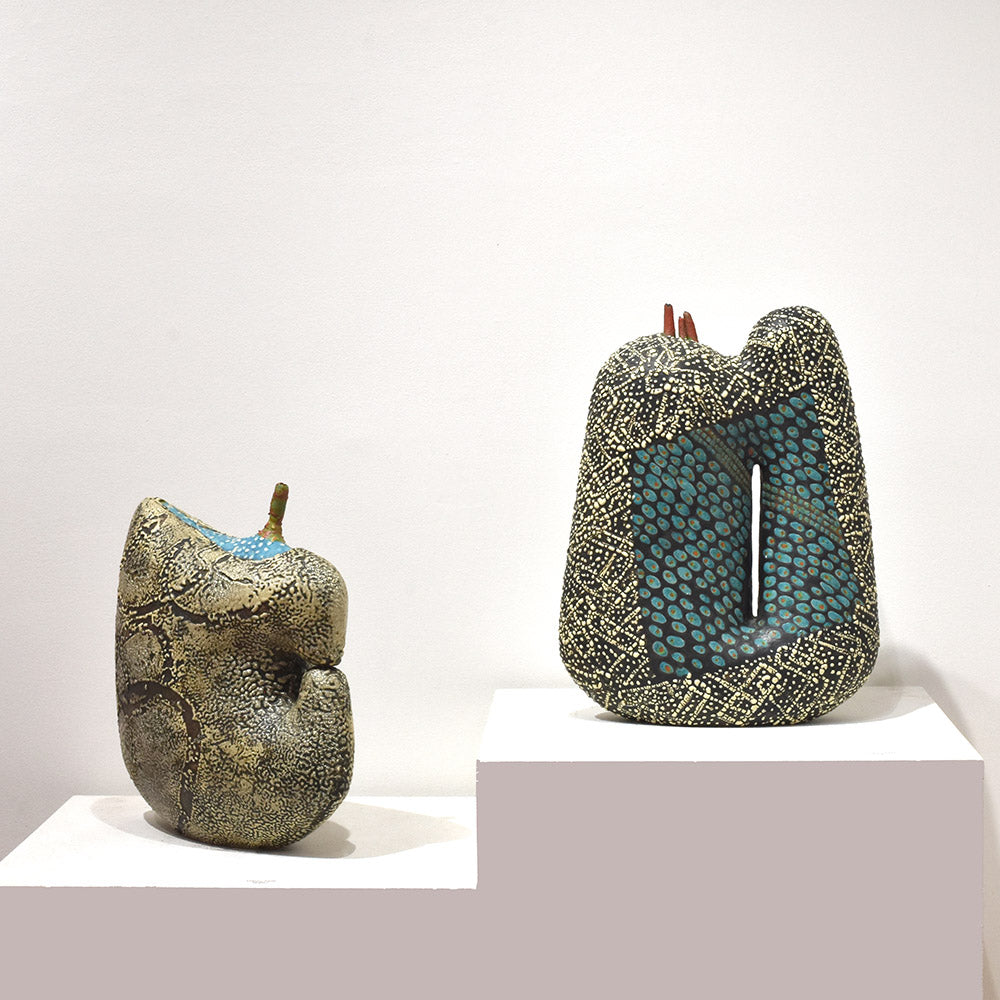 Personally, I am fond of Yoshiro Ikeda's artwork, particularly his "Garden Series," as it embodies Ikeda's unique artistic perspective. I have collected several pieces from this series. While I appreciate the soft and restrained round forms, the artist's choice of simple and minimalistic colors adds another dimension. Upon closer inspection, one can observe numerous textures, reminiscent of an infinite universe or a snowy landscape. Although they are pottery pieces, they transcend into artworks, inviting viewers to experience them on a deeper level. The abstract gardens created by the artist are revolutionary and evoke a fresh sense of excitement for the beholder.