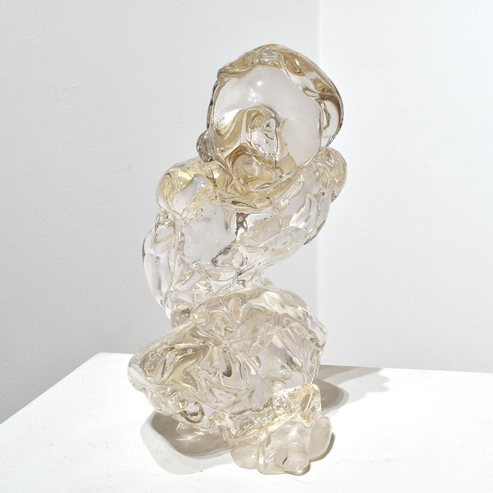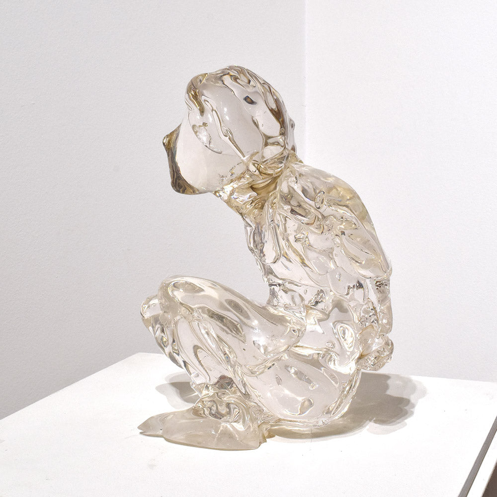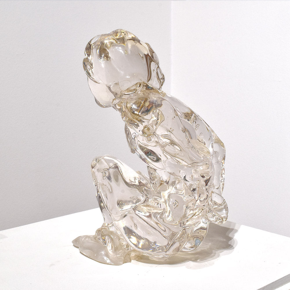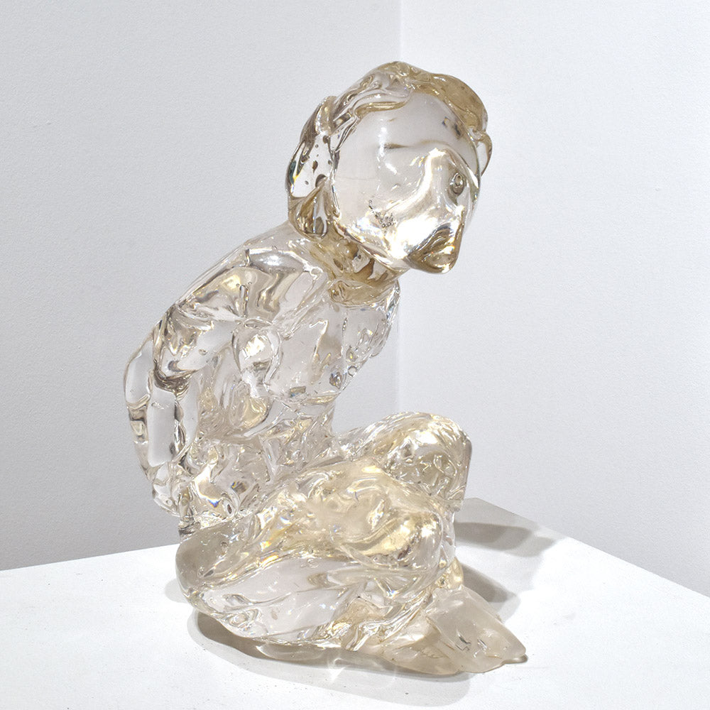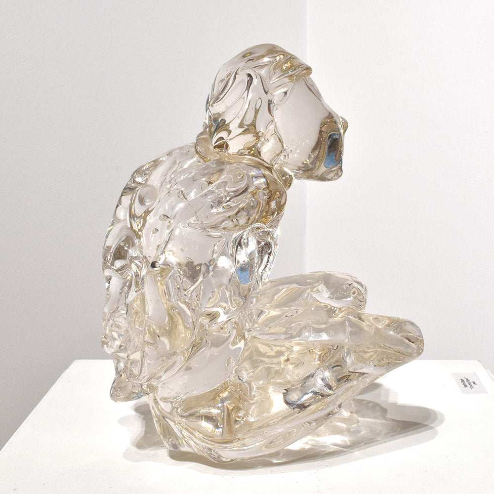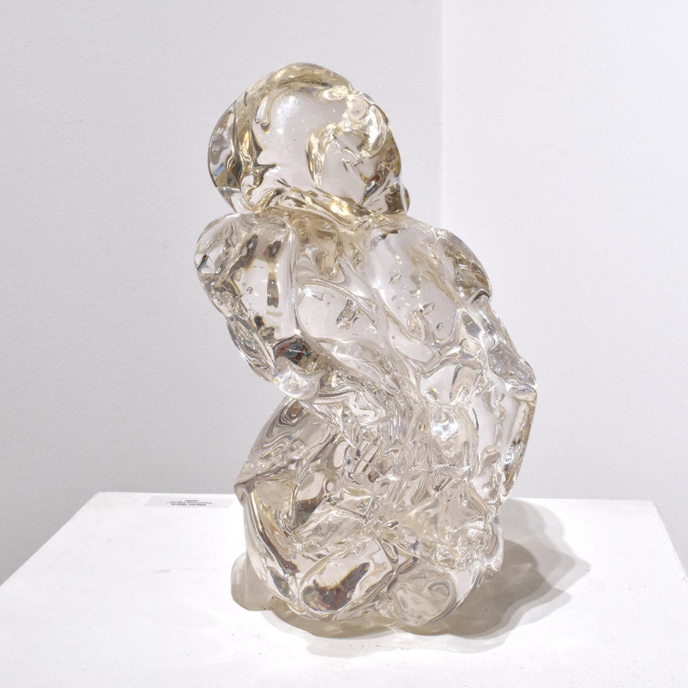 Martin Blank's Crouching Figure is crafted using the blown glass technique. Whether intentional by the artist or resulting from the production process, the human figure perceived in the artwork prompts deep contemplation. The expression of crouching and gazing in one direction evokes feelings of life's struggles and compassion, perhaps serving as a subtle reflection of our own realities. Despite its small size, the artwork conveys a significant message.