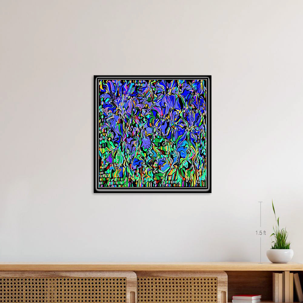 This artwork is an homage to Vincent van Gogh's famous painting "Irises." Inspired by van Gogh's masterpiece, the artist used Photoshop to remove brushstrokes and experimented with various effective techniques to create the final piece. Despite being magnified, reduced, and transformed using a computer mouse, the lively movement inherent in the original "Irises" is vividly conveyed to us, making it beautiful. Printed onto canvas via inkjet, this collection item can be permanently preserved without any fading. It is a highly popular piece and strongly recommended for interior design purposes.