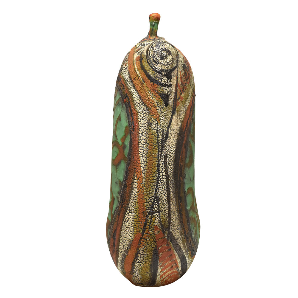 Yoshiro Ikeda (1947-2014) was a ceramic artist spanning the pre and postwar eras as well as contemporary periods in the United States. Having studied art at the Kyoto University of Art in the 1970s and the University of California, Santa Barbara, Ikeda was a well-known ceramic artist both domestically, exhibiting in numerous galleries and art museums including the American Museum of Ceramic Art, and internationally. He was also recognized as an outstanding art educator, dedicating himself to educational endeavors for the next generation of ceramic artists at the University of Kansas in the United States.