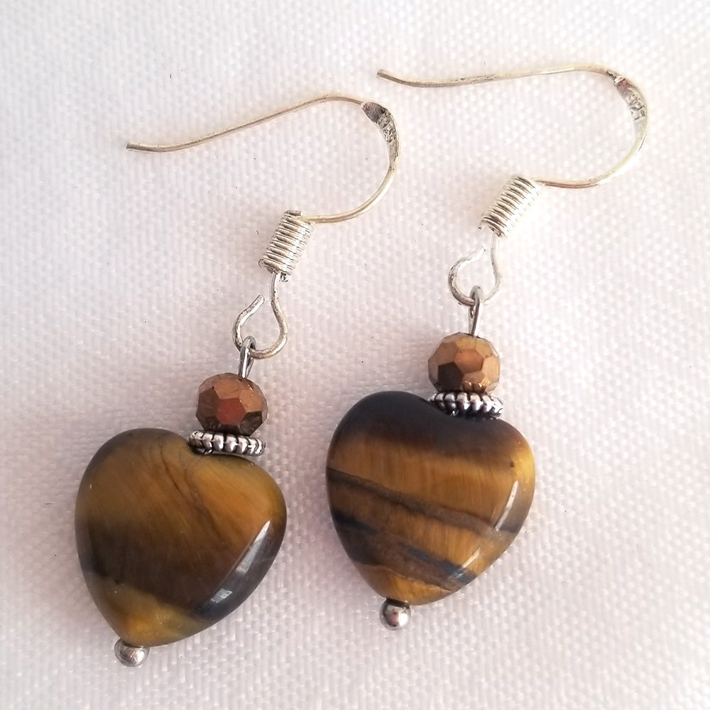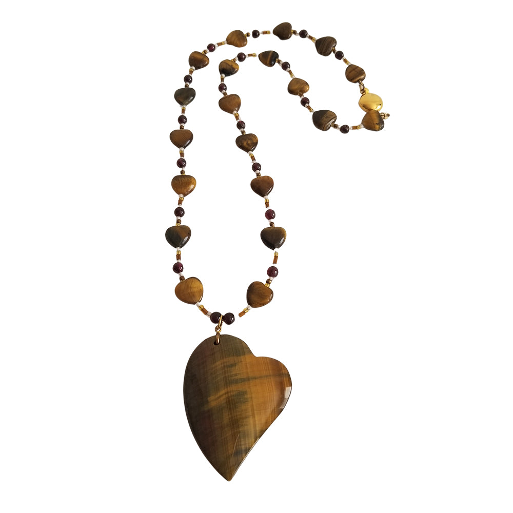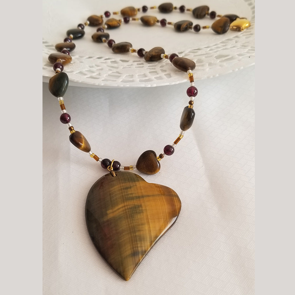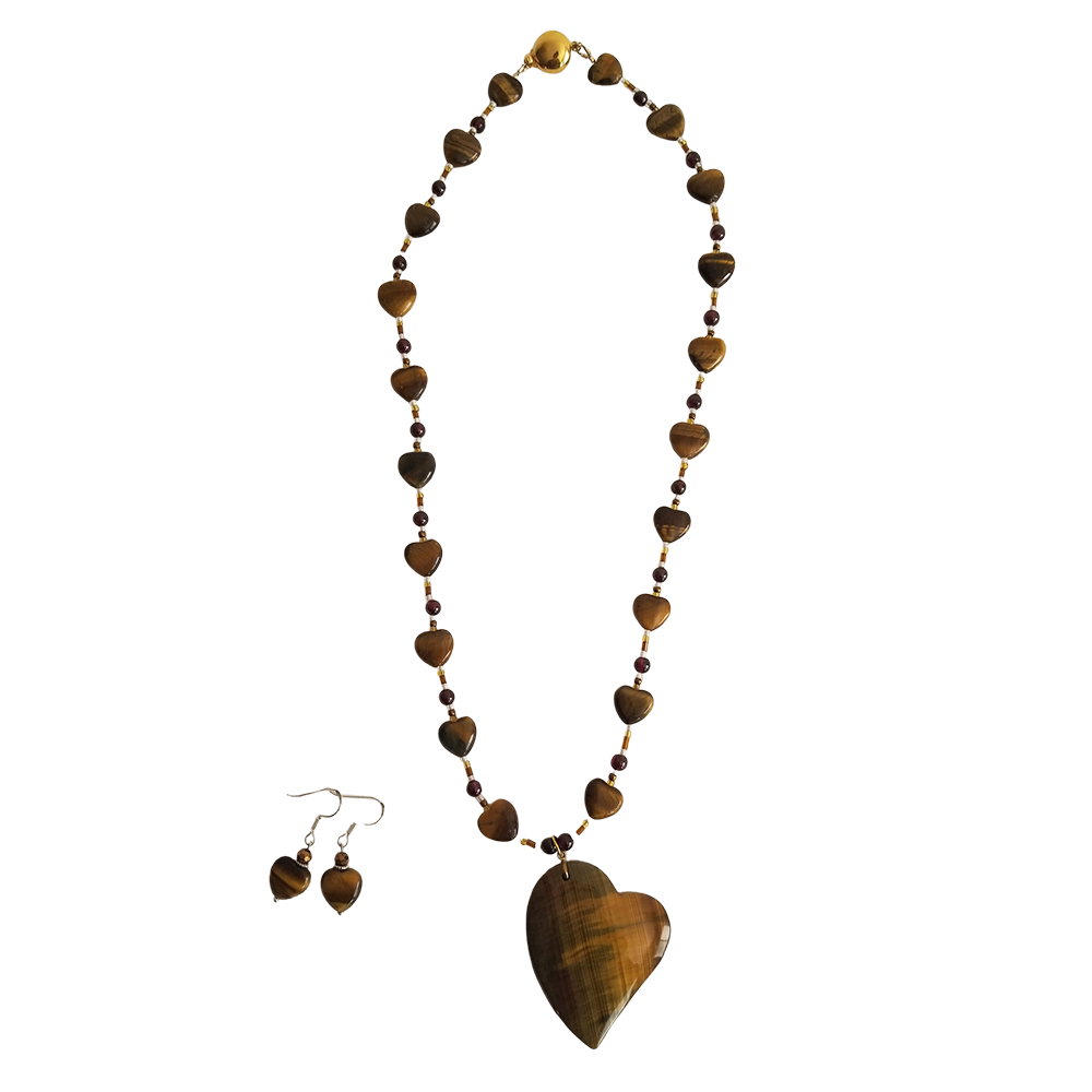 22.5” Tiger Eye Heart Shaped Necklace & Earrings Set