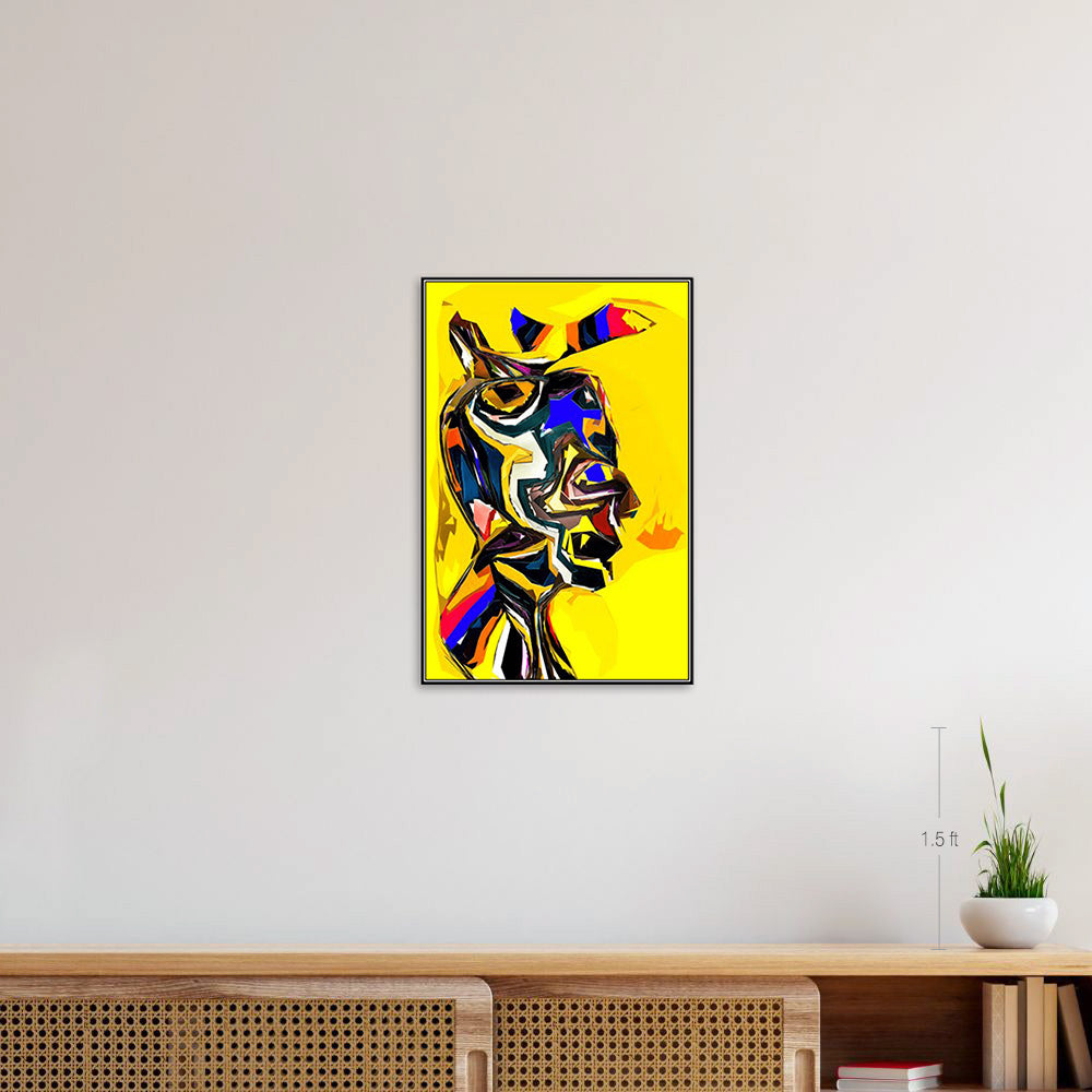 This artwork exudes a very bright and contemporary feel. By distorting and freely abstracting the forms of human faces, it offers viewers a unique sense of fun. The yellow background enhances overall clarity and draws the eye in. Created not with a brush but digitally with a mouse, this painting is printed onto canvas via inkjet, ensuring permanent preservation without fading. It makes for a great interior accent piece for homes or office walls.