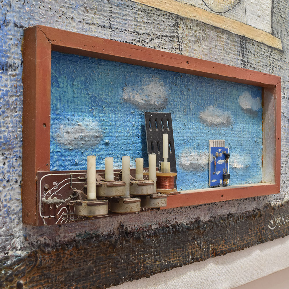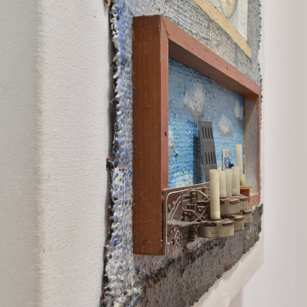 55”x 24” x 4”, Mixed Media on Wood Board.