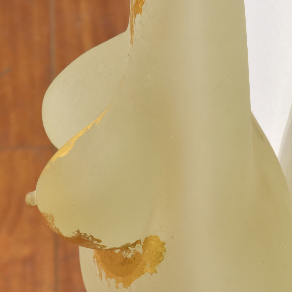 The use of clear and pristine white enhances the artwork, leading to a more sacred feeling. All three pieces are connected to a bottom abstract human-shaped pendant, making installation easy. It's a truly beautiful and lovely piece. This artwork, a rare large piece from the early days of the two artists, was exhibited at the Turstin Renaissance Gallery in 1996.