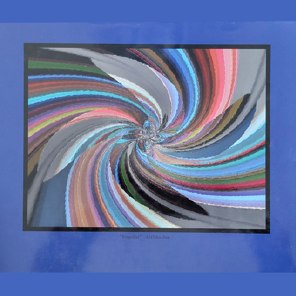 Bruce Thacker, "I began by digitizing my film images archived from thirty years as a professional photographer and then manipulating these photographs using a partial version of Photoshop called “Photoshop Elements.” Then followed an interest in fractals and fractal generating software. The fractal, though an interesting bit of geometry, has limitations. It is not instant machine made art; and it was easy to conclude that machines cannot make art. The patterns produced however can be used in creating artwork of considerable sophistication. In creating abstractions, I generally start with a group or pattern of colors, either found on the internet or; brought together by me on blank paper in Photoshop. They are then formed and manipulated on Photoshop, Gimp, and/or Picasa. I am not a computer expert. What I know I taught myself by continual experimentation; and my motto has become: many accidents but no mistakes."