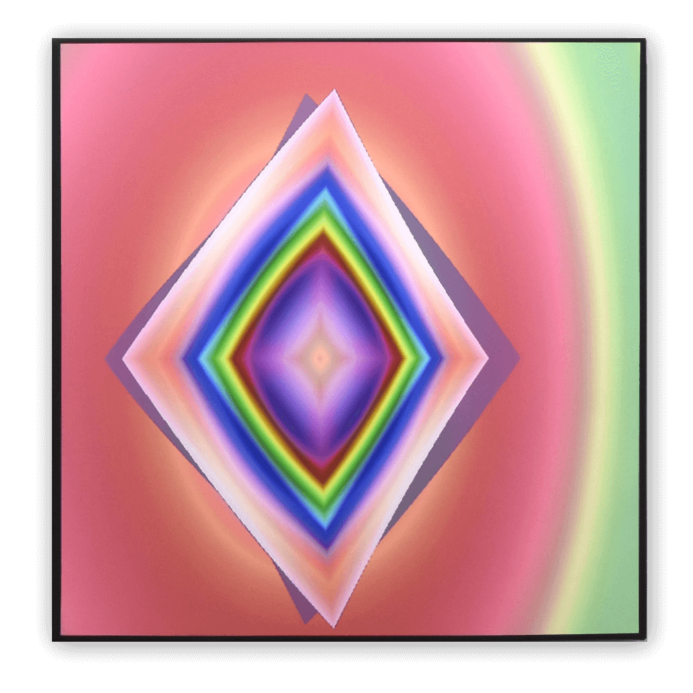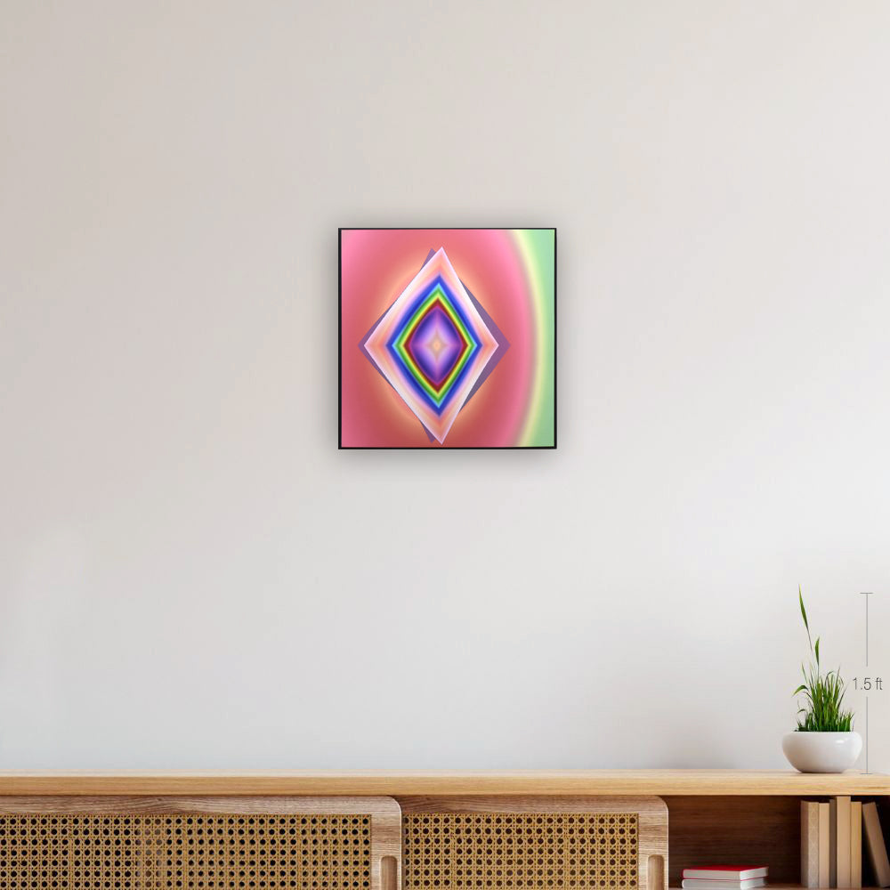 This is one of the pieces from the Three Optics series, printed with inkjet on a square canvas. The soft pastel tone of light pink brings out the presence of the subject matter. It's a piece created by transforming the basic rectangular shape, offering a simple composition yet evoking a modern and vibrant feel. While displaying it alongside Three Optics #1 and #2 enhances the effect, the artwork itself exudes a strong presence.